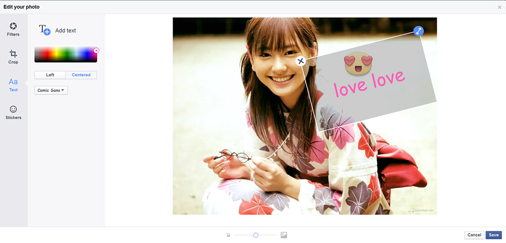ไม่ว่าจะ Crop รูป , เพิ่ม Text , ปรับ photo filters (Vintage, Spring, Summer, Fall, Winter and Snow)